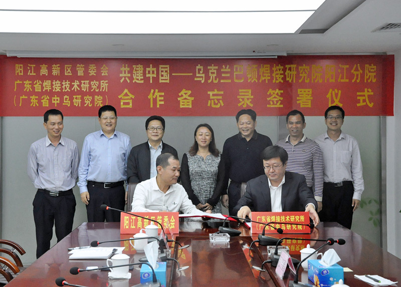 我區與省焊接技術研究所簽訂合作備忘錄 共建中國-烏克蘭巴頓焊接研究院陽江分院
