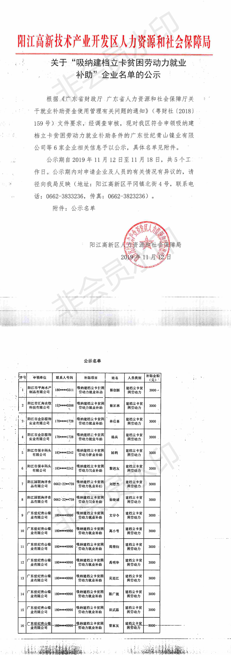 關于“吸納建檔立卡貧困勞動力就業補助”企業名單的公示