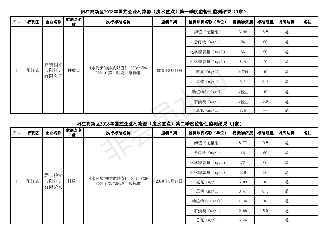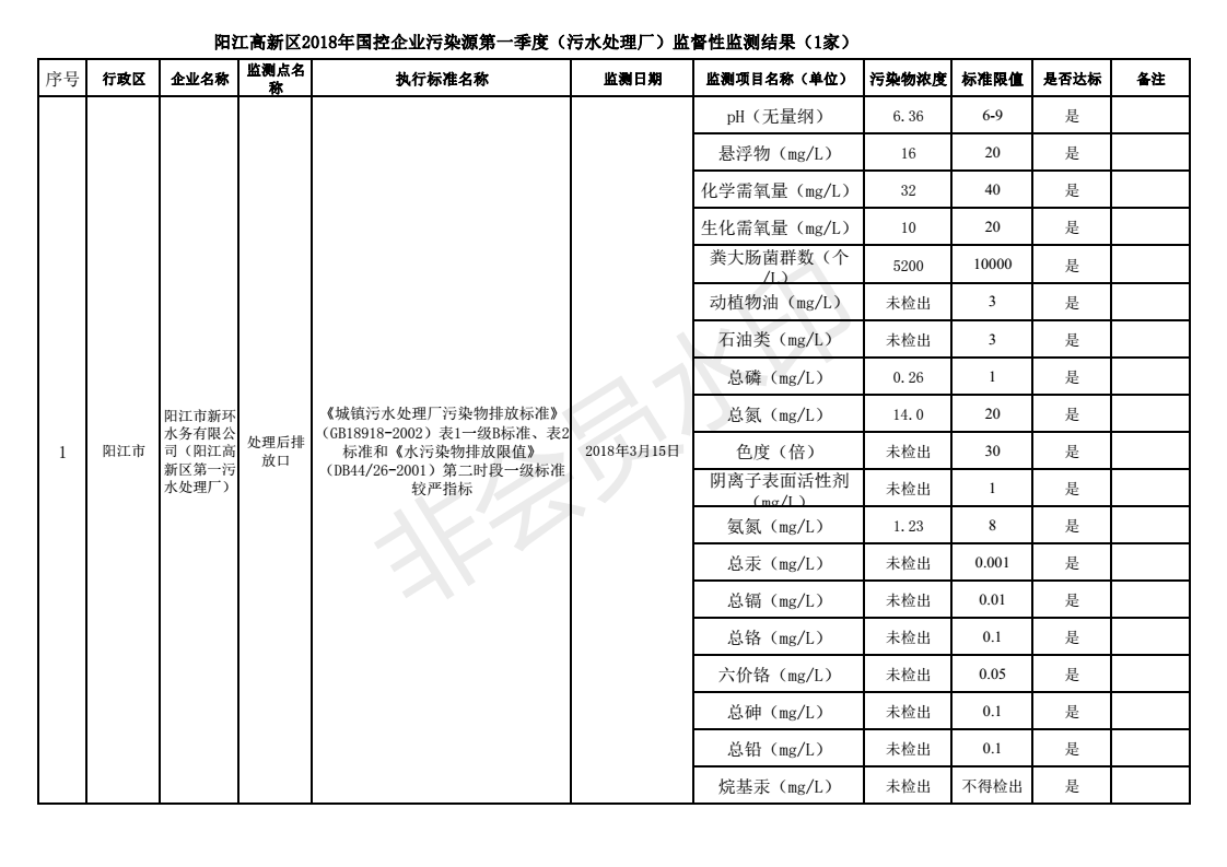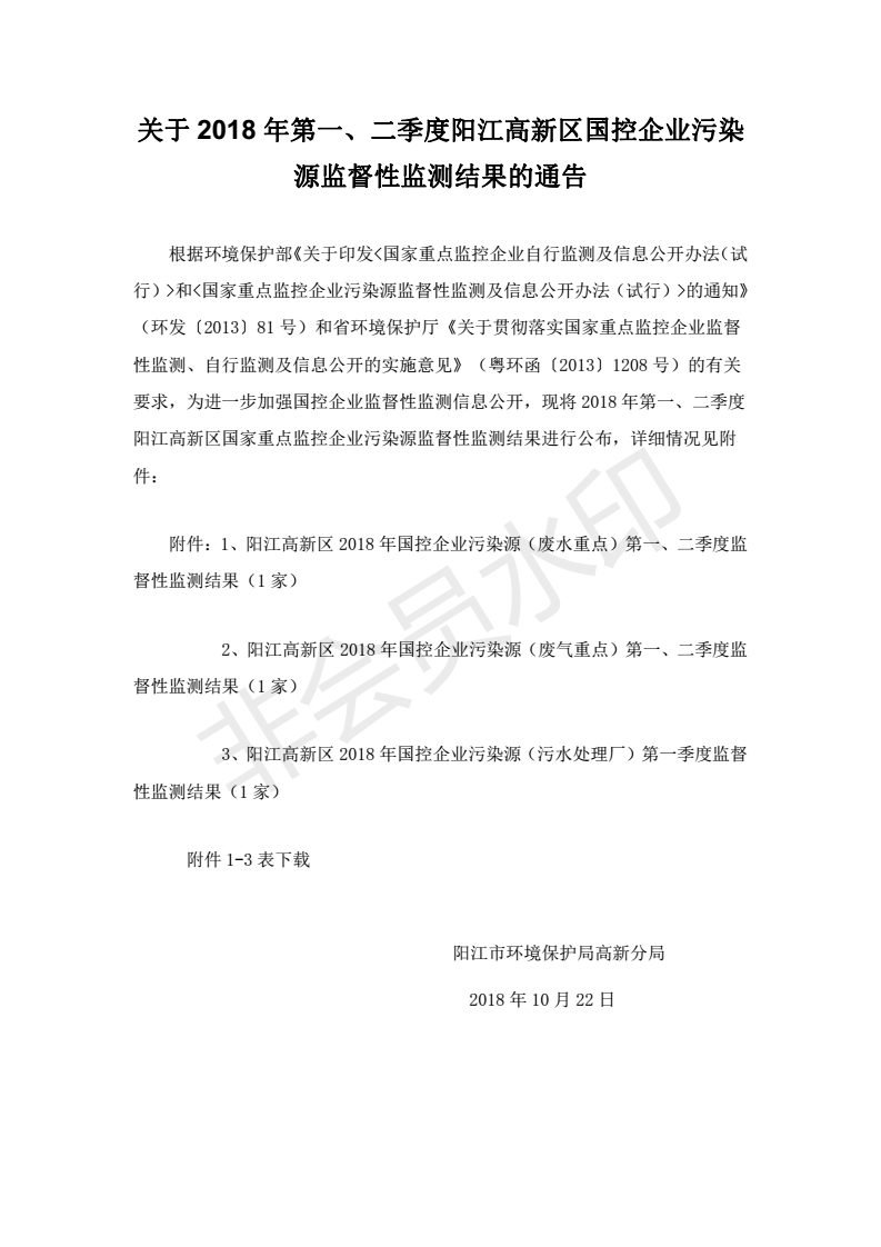 關(guān)于2018年第一、二季度陽(yáng)江高新區(qū)國(guó)控企業(yè)污染源監(jiān)督性監(jiān)測(cè)結(jié)果的通告