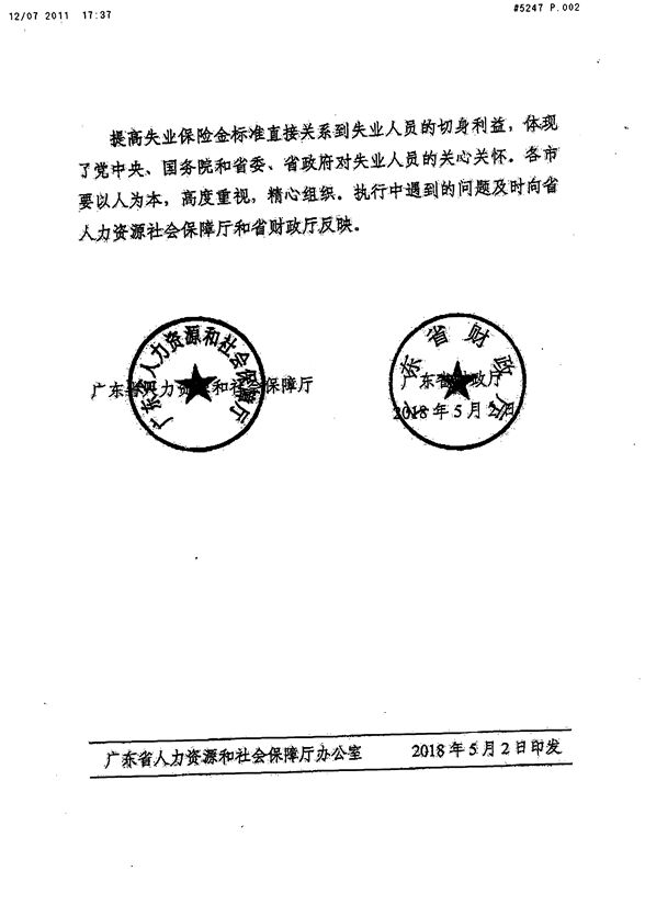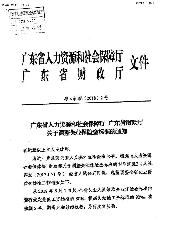 轉發廣東省人力資源和社會保障廳 廣東省財政廳關于調整失業保險金標準的通知