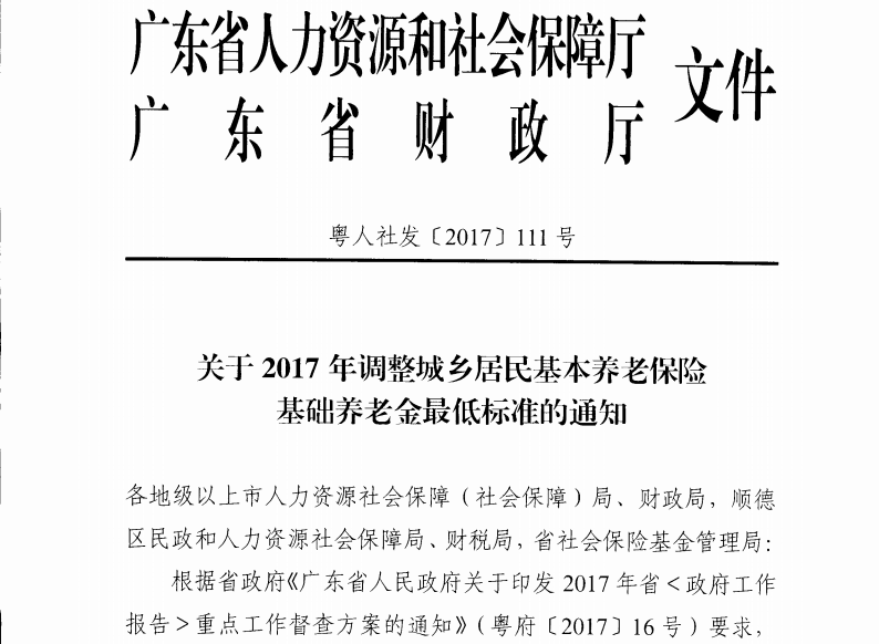 關(guān)于2017年調(diào)整城鄉(xiāng)居民基本養(yǎng)老保險基礎(chǔ)養(yǎng)老金最低標準的通知